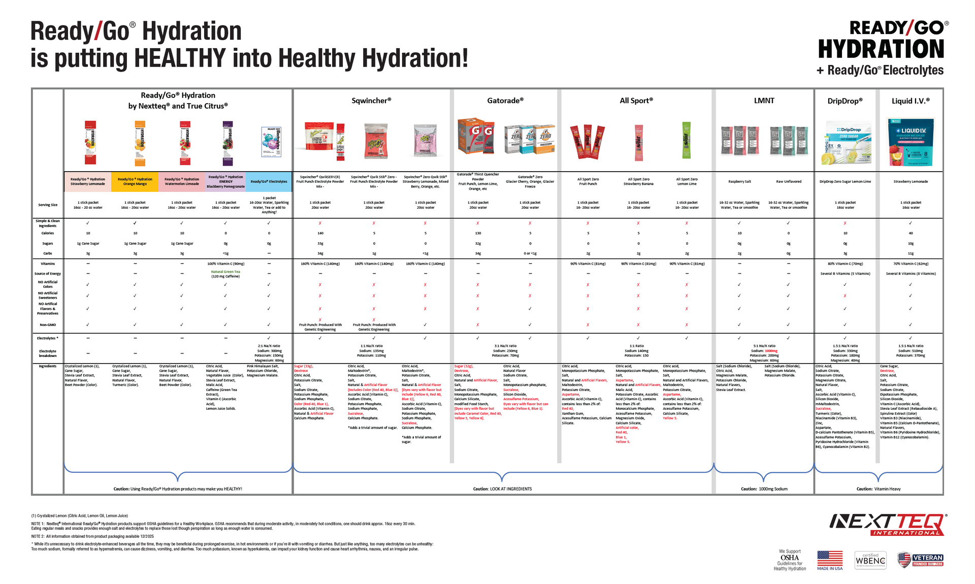Ready/Go® Hydration products are exclusively distributed by Nextteq International LLC, Tampa, FL 33634